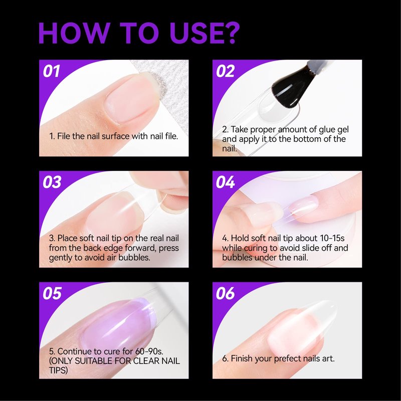 - [20 MINS READY NAILS] Combine gelike ec soft gel full cover nail tips with 6 in 1 nail glue gel and mini nail lamp, you can create a light-cured, preshaped nail enhancement in less than 20 minutes. This gel nail extension kit contours to your nail exactly from cuticle to free edge. It has a long lasting effect for good 4 weeks if properly applied.