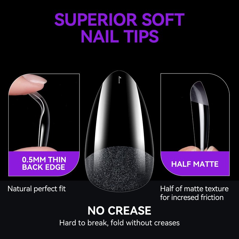 [PREMIUM MATERIAL]Our soft gel made from newest soak off soft gel material, instead of the traditional cheap ABS material like acrylic nails. It means thinner, more malleable and more natural.