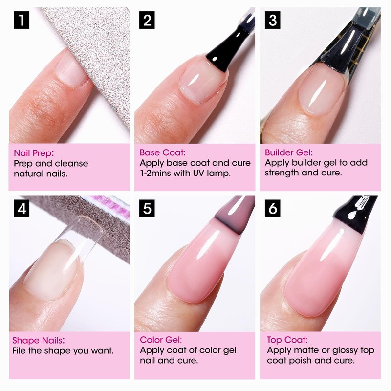 Builder Gel can be applied directly on the natural nail as base coat.Or use as an overlay on your nails to add strength,reshape and sculpte the natural nail.