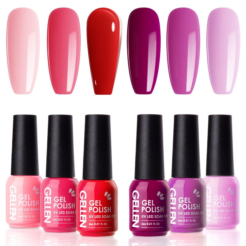 Gellen Purple Burgundy Red Gel Nail Polish Set 6 Colors