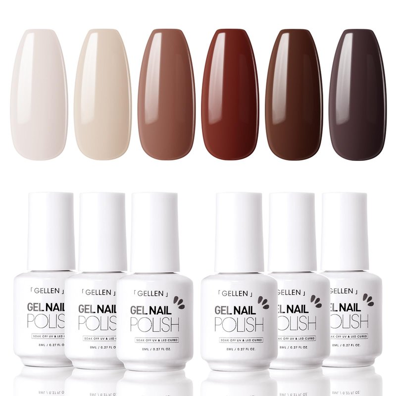 Gellen Coffee Gel Nail Polish, 6 Colors Solid Gel Polish Kit Brown Milky White Beige Colors, Trendy Warm Nail Gel Polish Set Home Salon DIY Manicure Kit