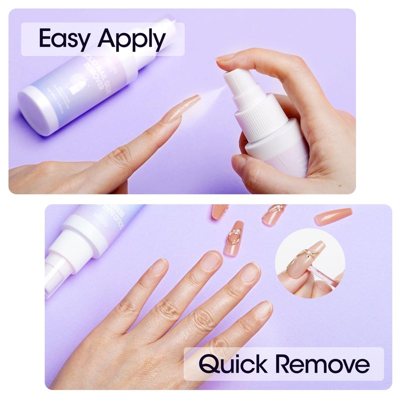 - 【Save Time and Money】: This nail glue remover is a great tool to remove solid nail glue. Much easier than soaking and nail drill. Just spray gel nail glue remover on your nails and then gently remove the fake nails with a acrylic stick. Say goodbye to acetone soaking and long-time grinding