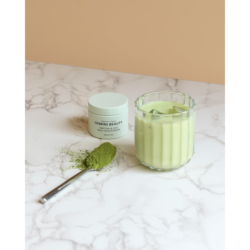 - HYDRATION BOOST: Gemini Beauty Matcha & Oat Moisturizer delivers intense hydration to your skin, thanks to its rich blend of key ingredients such as Colloidal Oats and Aloe Vera. This pillowy cream provides a surge of moisture, mimics skin’s natural oils for balance and is designed to rejuvenate and energize tired and dehydrated skin to help restore its natural vitality.