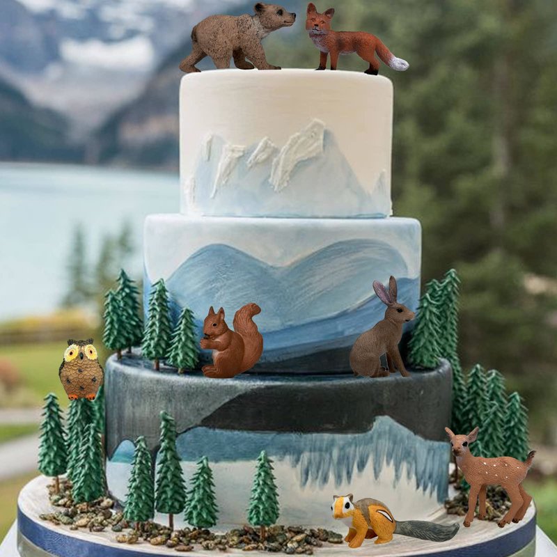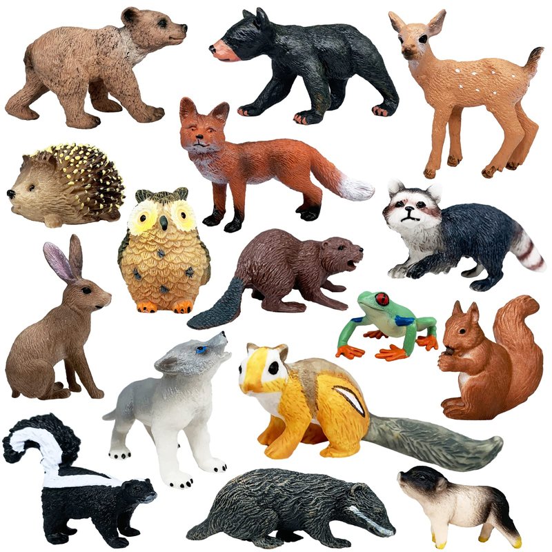 - 🦌【Ideal Toy or Display Model】Great for miniature christmas decorations, landscape scenes, imaginative play, birthday cake toppers & woodland baby shower party themed etc. Include 16 Pcs Baby Animals: Wolf, Bear, Hedgehog, Black Bear,Tree Frog, Deer, Raccoon, Piglet, Rabbit, Red Fox, Badger , Squirrel, Chipmunk, Skunk, Beaver and Owlet.