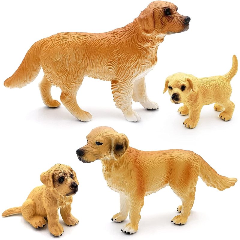 Gemini&Genius Dog Toys for Kids, Golden Retriever Family Playset, Detail and Realistic Puppy Action Figures, Pet Doggy Toys, 2-4 Inches Length - Baby Shower Cake Toppers or Toy Gifts for Kids