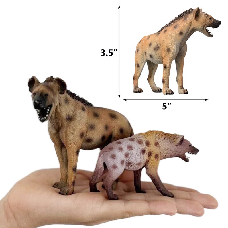- 【Realistic Emulational Details】This wildlife toy hyena was made by hand painted with high realistically detailed appearance. Their uniquely molded textures and richly painted details make the animals vivid. And all the animal figures stands up very well, they do not fall over. Children would like to spend more time to observe and play with them.