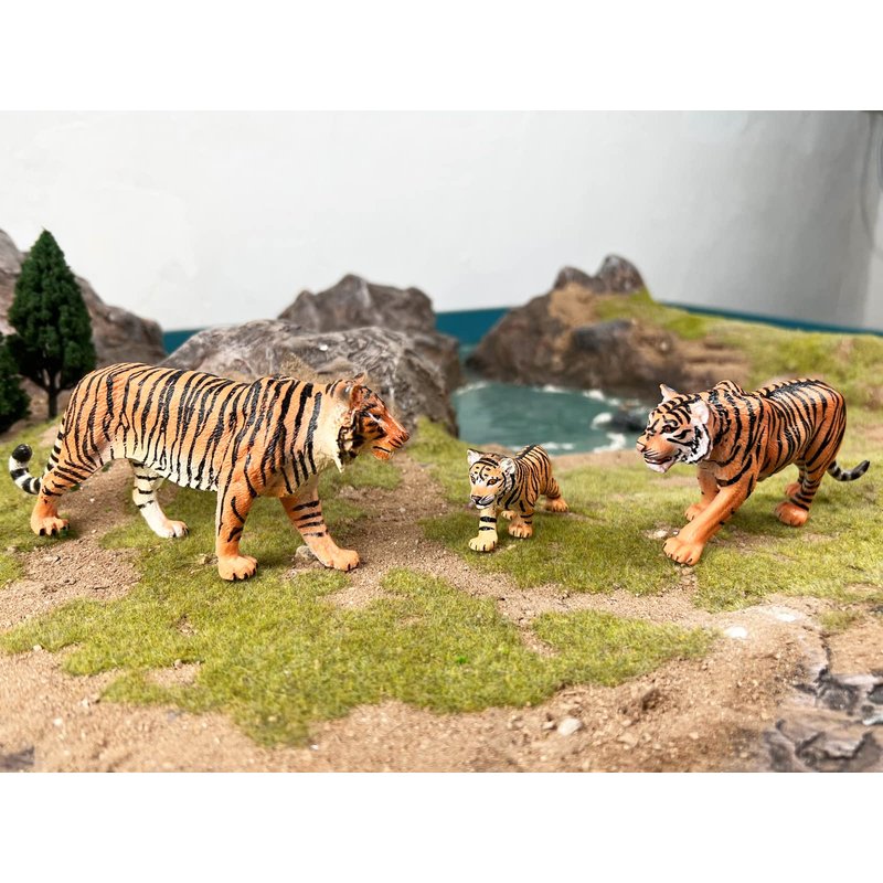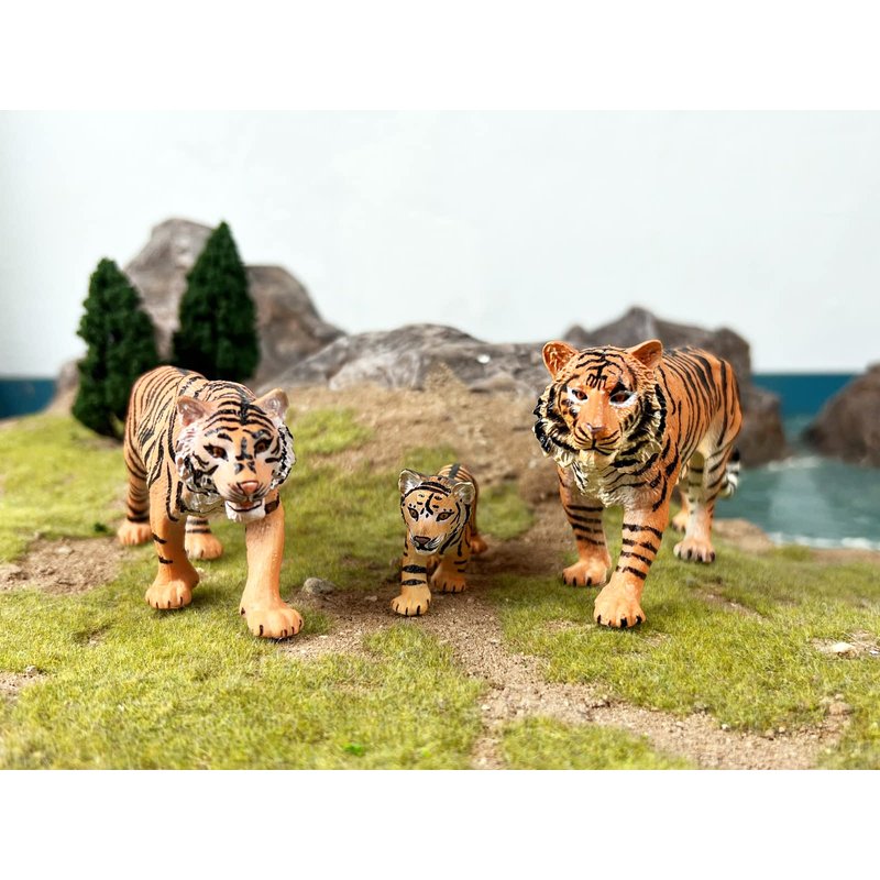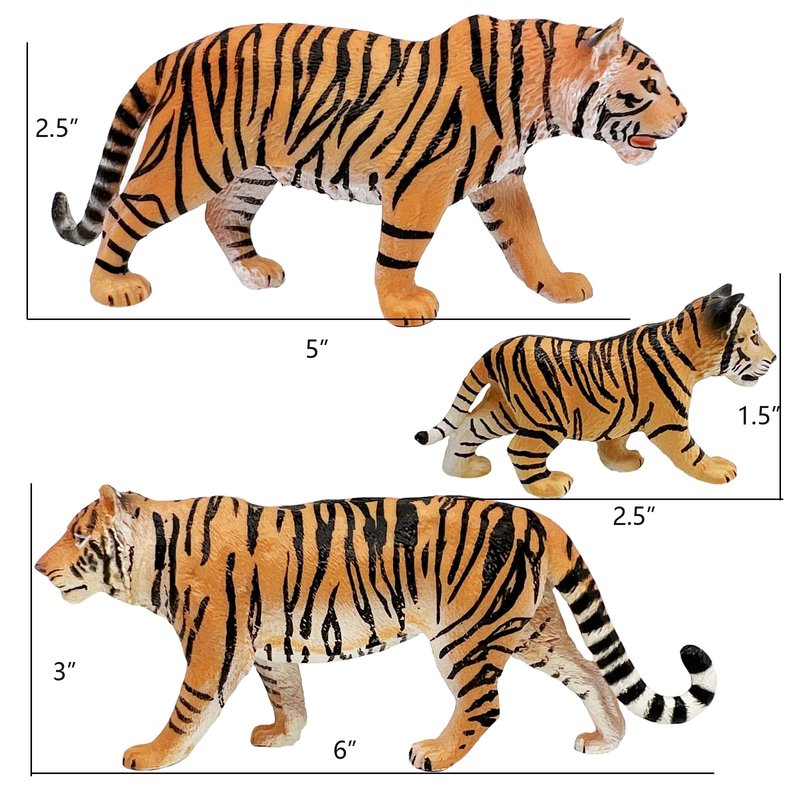 - ★JUNGLE ANIMALS: 3PCS Family Tiger Figurines for kids, plastic jungle animals with realistic detials and natural poses. Realistic Sculpting & Texture Playset, Great Birthday Gifts, Cake Topper for Kids