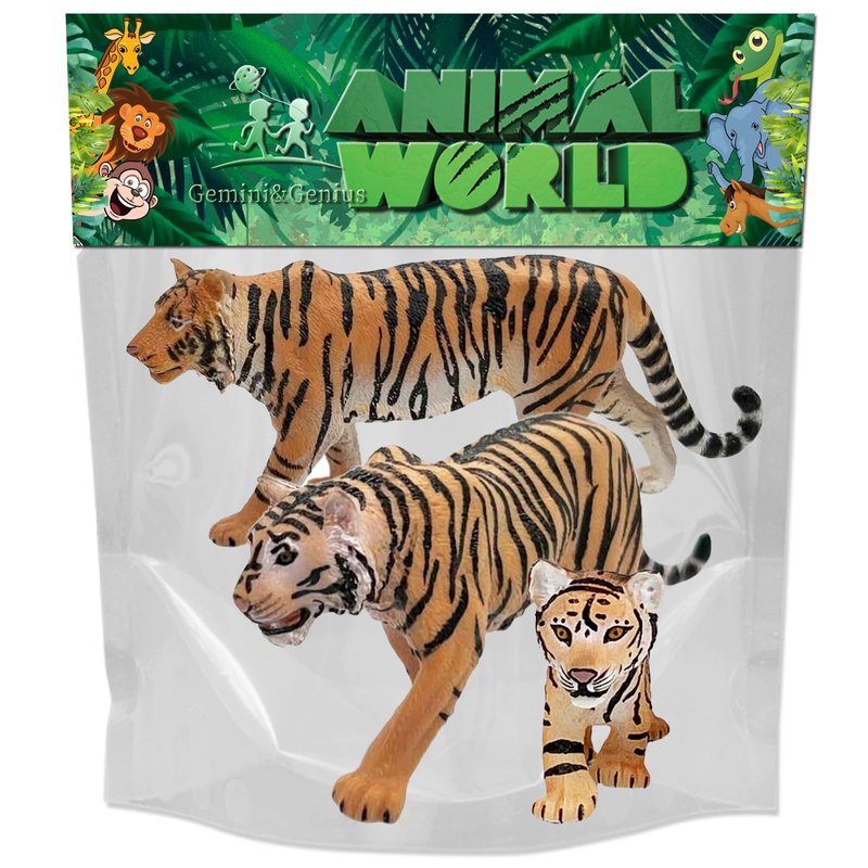 Gemini&Genius Tiger Figurine Toys, Safari Animal Action Figures, 3 Pcs Wildlife Animal Toys-3-6 Inches Length-Great for Kids Gift, Party Favors, Treasure Box Prizes, Goodie Bag Fillers or Cake Toppers