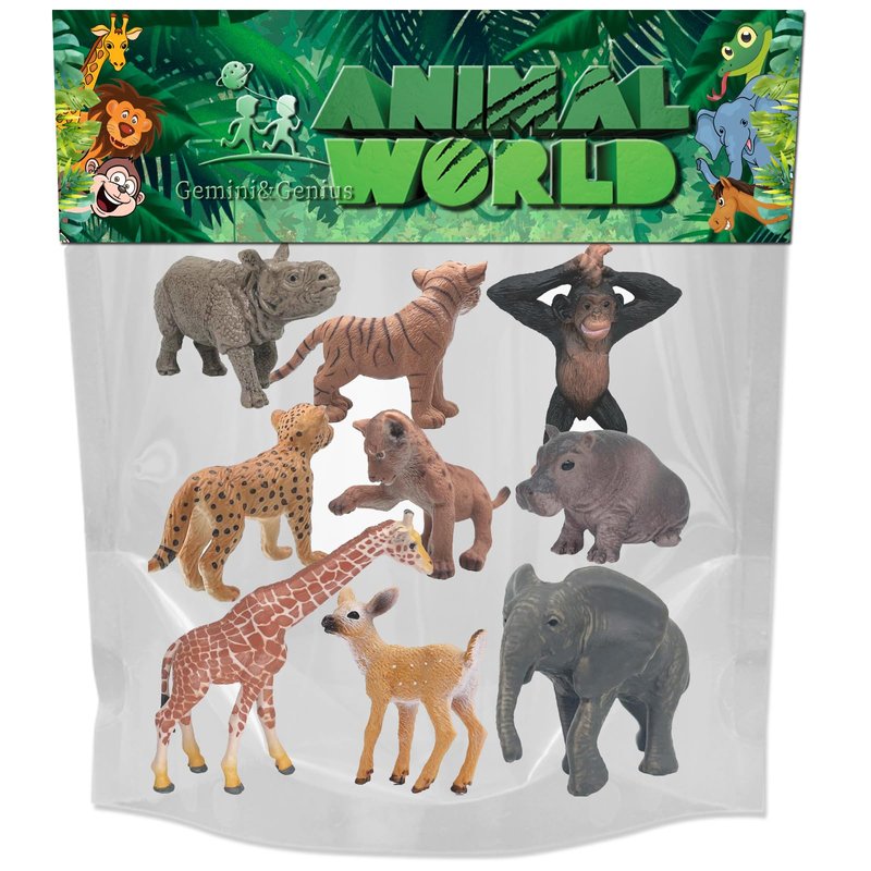 Gemini&Genius Wild Animal Toys for Kids, 9 Pcs Jungle Animal Baby Toy Figures, Toy Gifts for Kids, Wildlife Toys Perfect Cake Toppers for Baby Shower, Soild Plasitc and Well Designed Animal Figurines