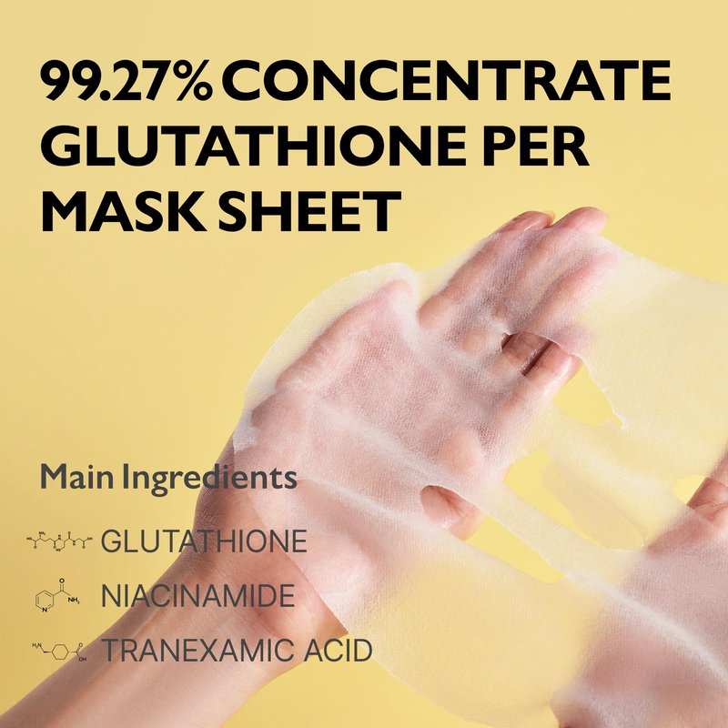 - 💧ONE WHOLE AMPOULE INCLUDED: Each sheet mask is drenched in one Glutathione Brightening Ampoule essence and can be applied on the rest of the neck and body for extra moisturization.