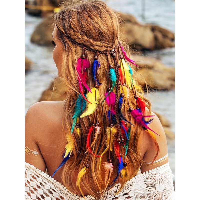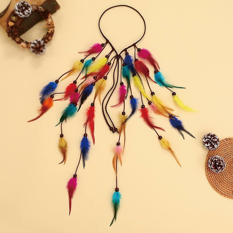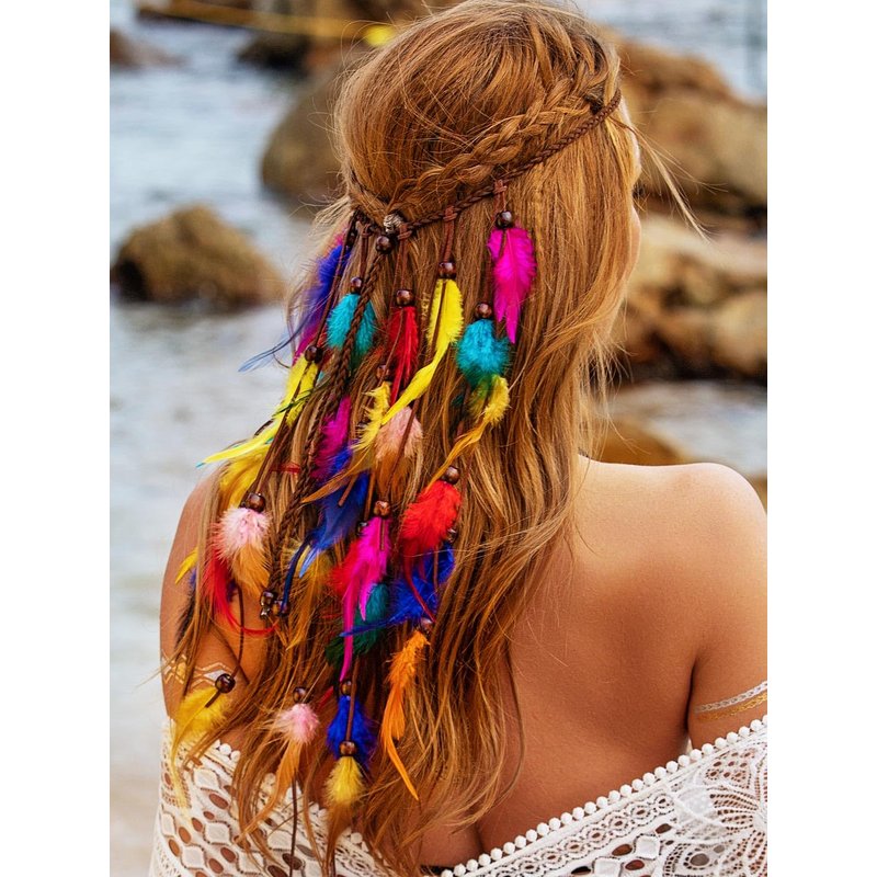 - Bohemian feather headbands are made of great colorful feathers, wooden beads and braided rope,exquisite with soft materials and hand-crafted