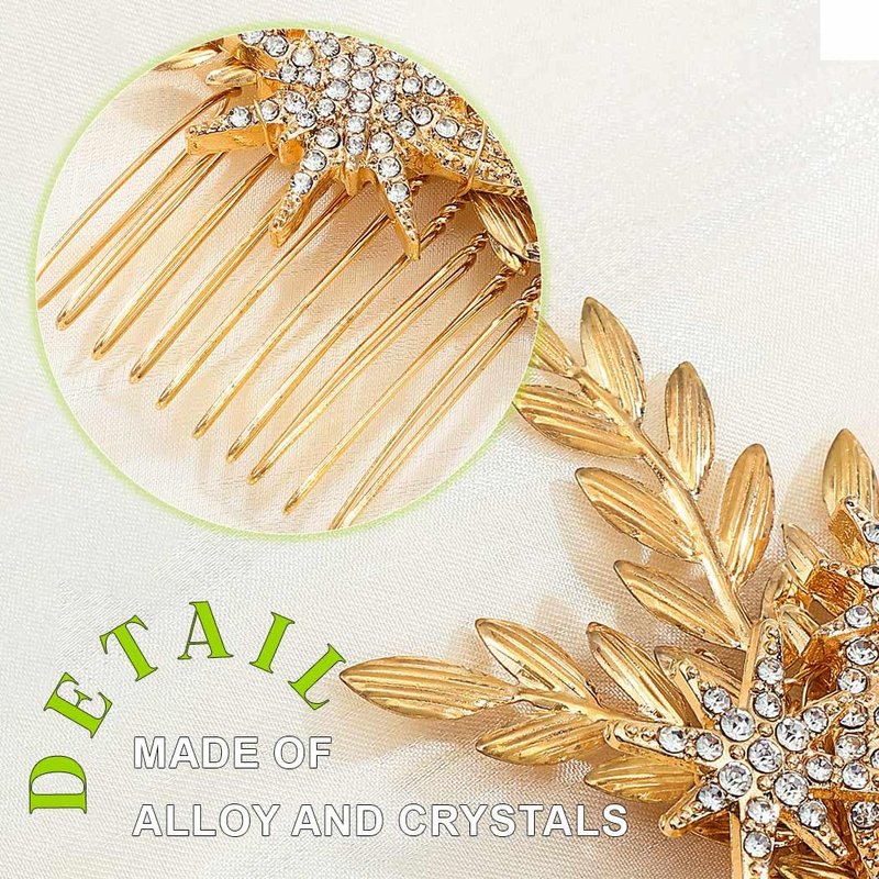 GENBREE Leaf Bride Wedding Hair Comb Gold Star Moon Hair Piece Crystal Bridal Hair Accessories for Women