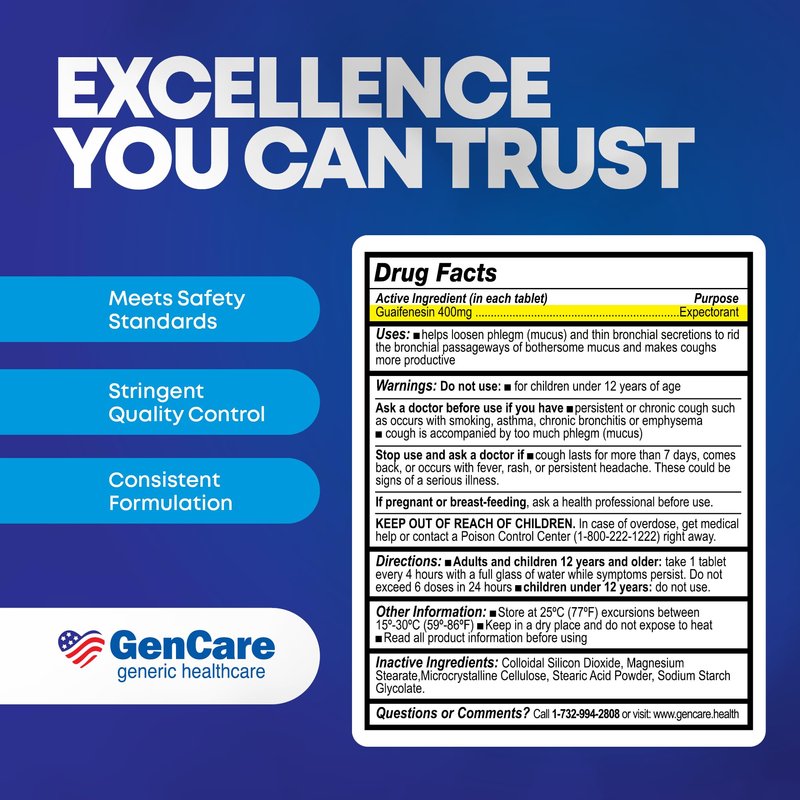 GenCare Mucus Relief Expectorant Guaifenesin 400 mg 200 Tablets Value Pack - Fast Acting Thinning of Mucus for Colds, Chest Congestion, Flu, Coughing and Allergies