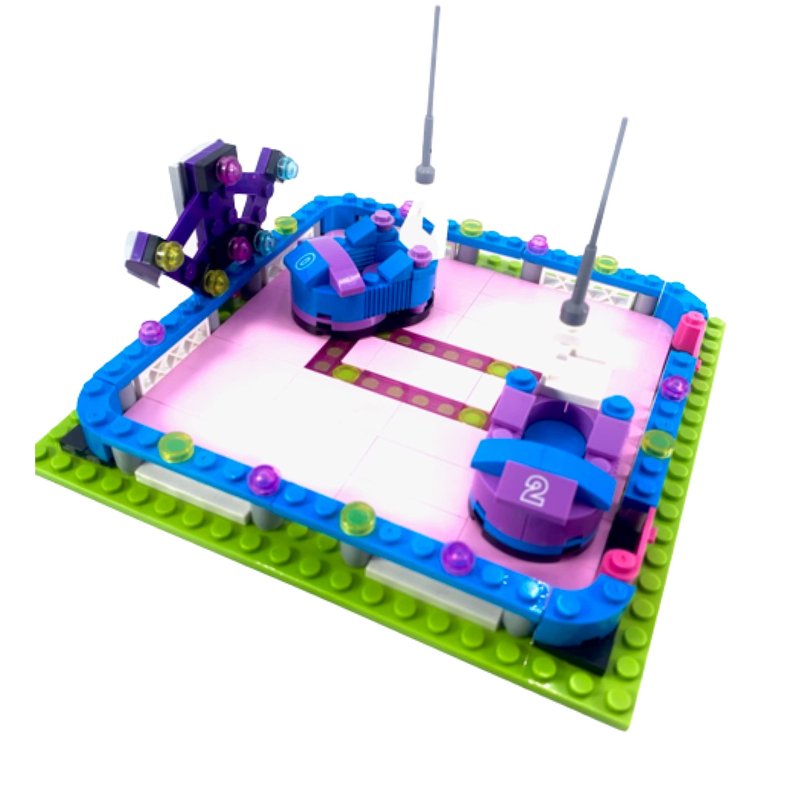 - General Jim’s City Amusement Park 2 Piece Modular Building Block Brick Set It has a Bumper Car Ride(237 Pieces ) and Swing Ride (336 Pieces) Building Blocks Toy Bricks Set Collection For Adults and teens. Bumper Cars have 237 quality bricks to make up ride and control booth. The car arena is fenced in with 2 gates that open and close.