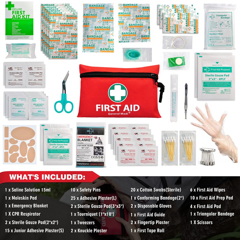 - Comprehensive Care - This ultimate survival kit consists of everything that you need to clean and dress minor wounds in a convenient mini pouch . Our first aid bag also includes a premium selection of emergency-preparedness supplies, giving you the peace of mind that you deserve for small trauma during every adventure at home, school, office, and the outdoors.