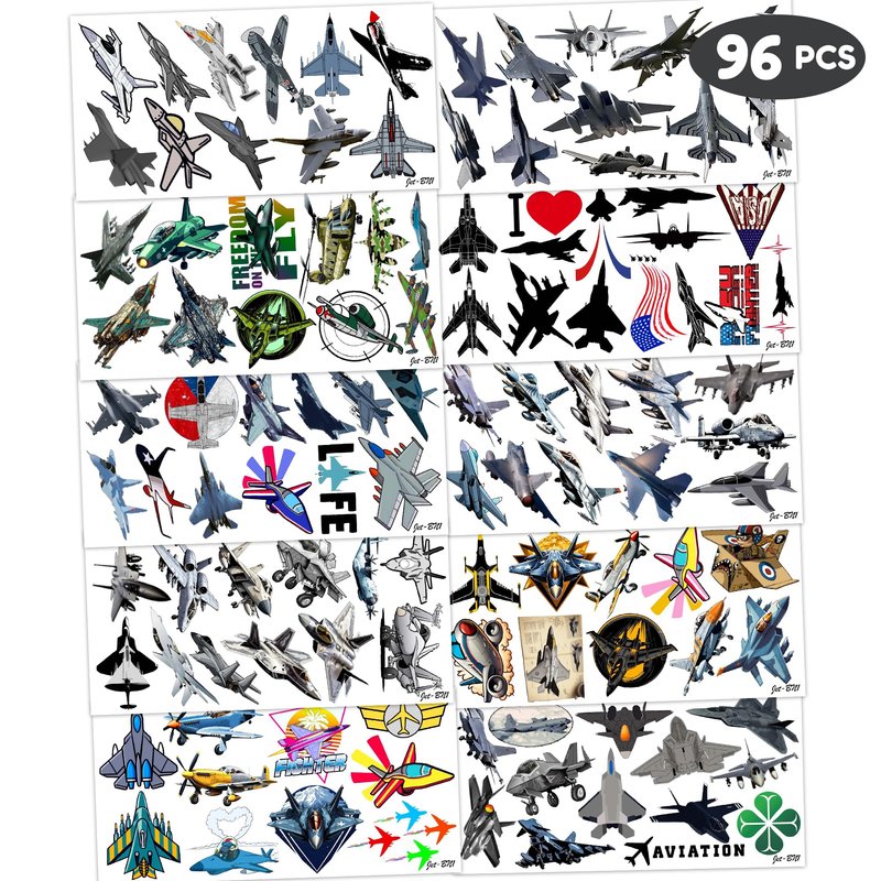 - 🛫PACKAGE INCLUDES:The package includes 10 sheets, each with 96 PCS and measures 6.1 x 3.1 inches, as well as a full set of fighter JET tattoos. This amazing ornament assortment is sure to exceed your expectations.