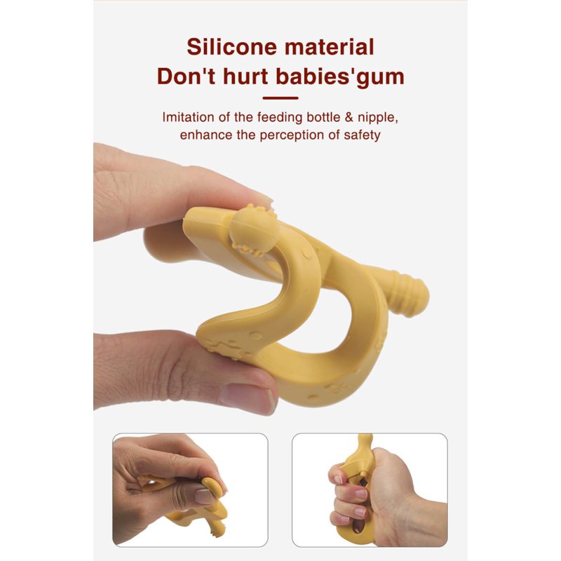 Soft, Safe Silicone: Made from high-quality, food-grade silicone, this teether is soft yet durable, providing the perfect texture for tender gums. Its BPA-free, non-toxic material ensures a safe chewing experience for your baby. Ergonomic Bottle Shape: The unique baby bottle shape is not just adorable; it's also ergonomically designed for tiny hands to grasp and hold easily, promoting motor skill development as they play and chew. Gentle Massage: The textured surfaces offer a gentle massage to soothe baby's sore gums, reducing discomfort and fussiness. It's designed to reach all the right spots in your baby's mouth, providing relief from teething pain. Easy to Clean: Hygiene is paramount, which is why our teether is dishwasher safe and easy to sterilize. It's also freezer-friendly, offering an extra cooling sensation to soothe inflamed gums. Portable & Durable: Lightweight and easy to carry, it's the perfect teether for on-the-go relief. Its durable construction ensures it can withstand countless hours of chewing without losing its effectiveness. Why Choose Our Silicone Baby Bottle-Shaped Teether? With its baby-friendly design, our teether not only alleviates the discomfort of teething but also engages your little one in a comforting, familiar experience. It's an ideal gift for new parents, baby showers, or as a thoughtful addition to your baby's essentials.