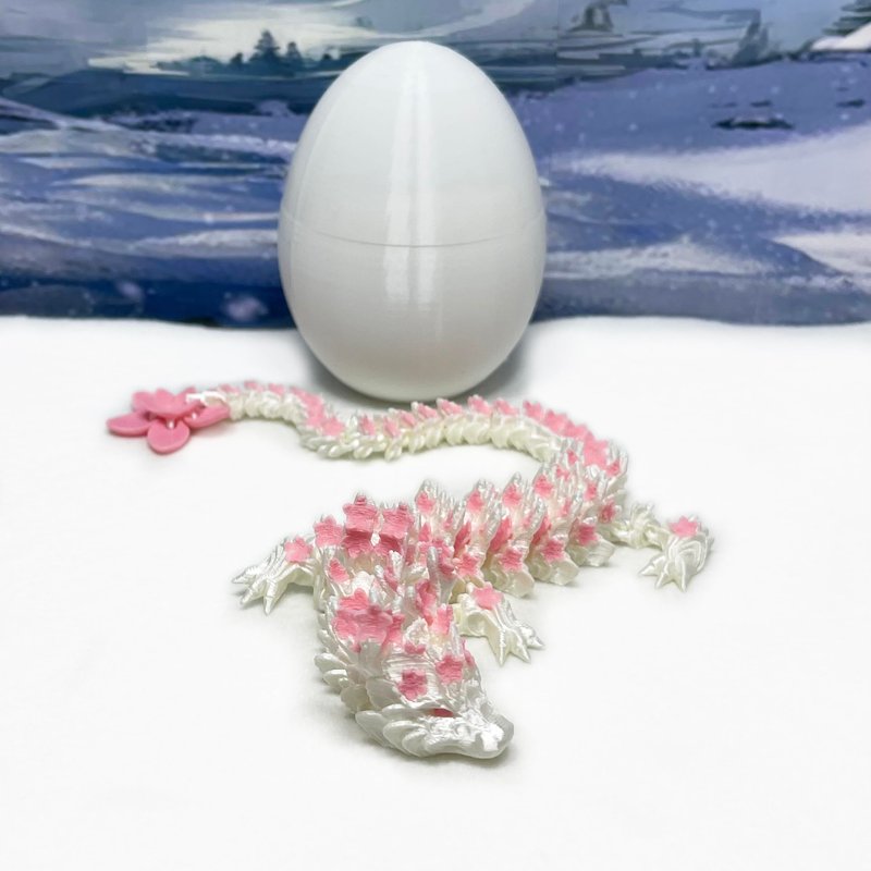 3D Printed enchanting Articulated Cherry Blossom Dragon - a mystical creature that brings a touch of fantasy to your world. Unveil the mystery of the this PINK & white Cherry Blossom Dragon ( measures approximately 12" long) a captivating fusion of elegance and fantasy and reveals itself with a symphony of colors - a testament to its magical heritage. ------- Choking Hazard Small Components Advisory NOT for Children under 3 years old: ------- Please note that this product may contain small components and might not be suitable for very young children. Given the characteristics of 3D printing, there is a potential for small components to detach if handled aggressively or dropped. Therefore, we advise against allowing younger children to interact with the dragon. Please consider that 3D printed objects might include minor imperfections such as layer lines. These are a natural and inherent aspect of the printing process. We strive to produce the highest quality items, and these imperfections contribute to the unique character of each piece. Recall the unique creation of each dragon, crafted exclusively for you. The color selections available are depicted in the provided photos. Please be aware that variations in color may occur due to discrepancies in filament production and the characteristics of the monitor or screen you are utilizing to view the listing. Additionally, the arrangement of prints using multi-colored filament rolls can influence color distribution. ------- Licensing Information: ------- Authorized Design: NOHo3D holds the official authorization for the production of this exquisite design created by CinderWing3D.