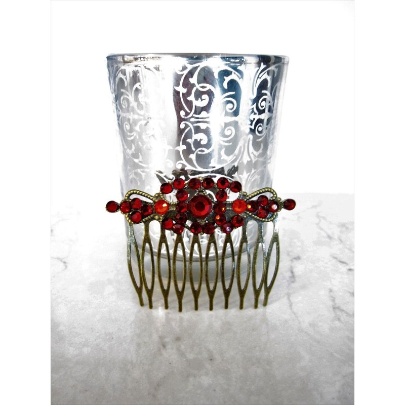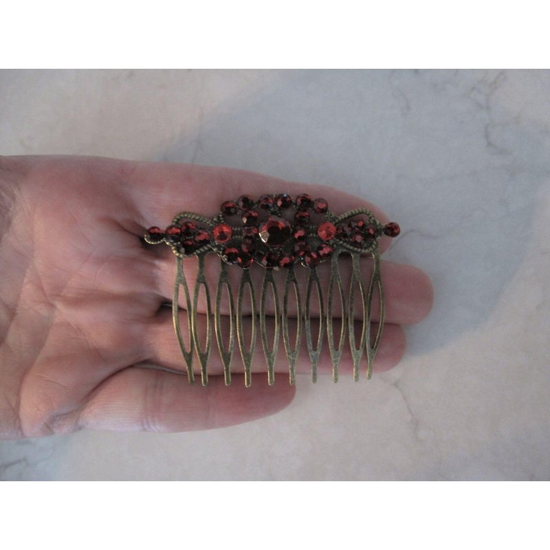 Beautiful hair comb with garnet red crystals for that special occasion. This clip is 2 1/2 inches wide. If you need more I can make to order, just send me a message.