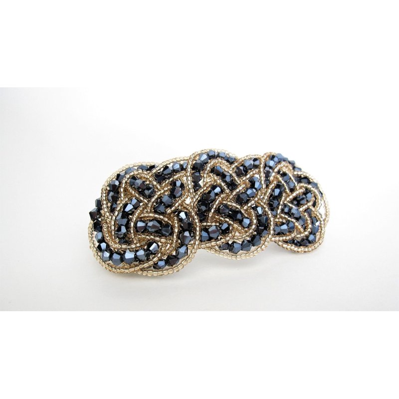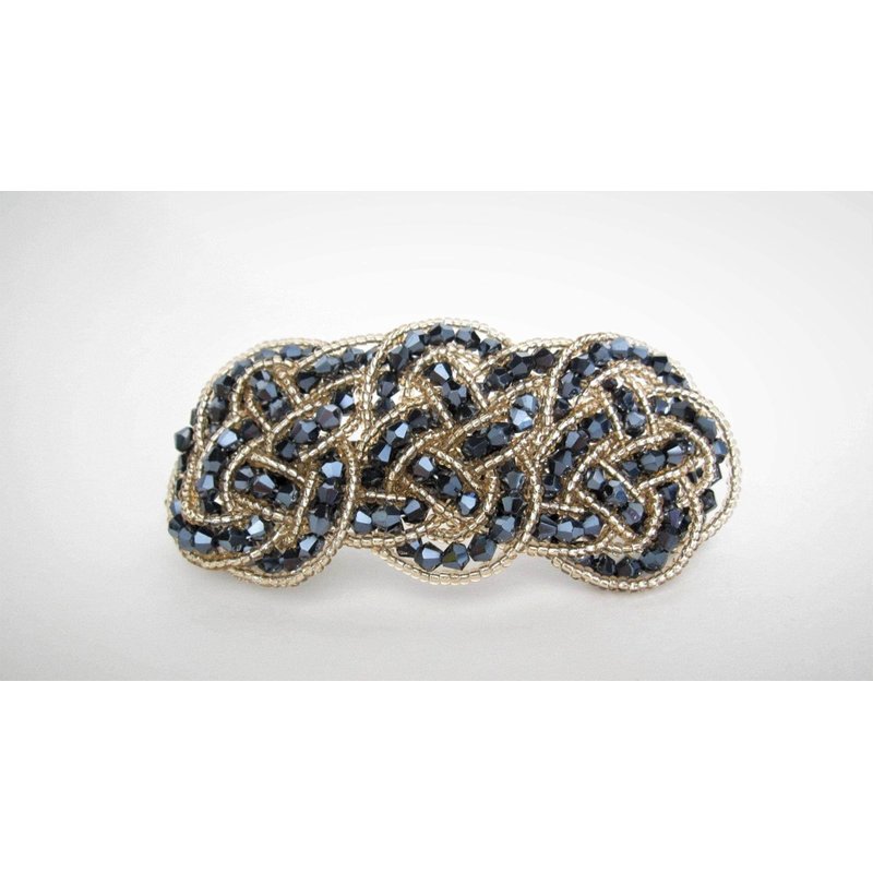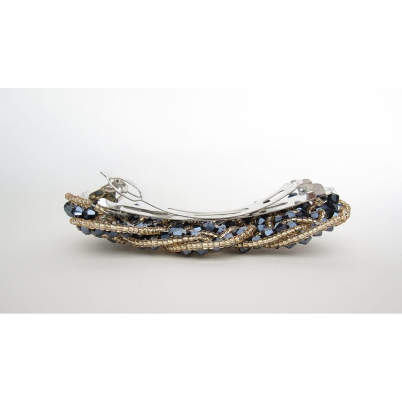 Beautiful blue hair clip with crystal beads for that special occasion. Clip is made with a mesh type material, so it is soft and light weight. This clip is about 3 1/2 inches long and 1 1/2 inches wide.