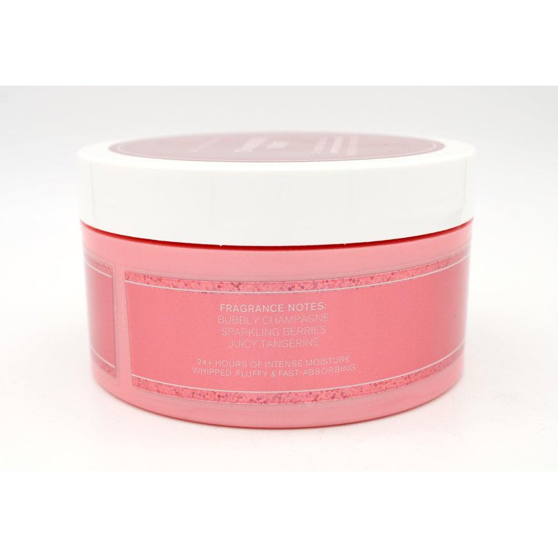 Fragrance notes: Bubbly Champagne, Sparkling Berries, Juicy Tangerine / What it does: provides over 24 hours of intense moisture. / Infused with shea butter, cocoa butter and coconut oil / Whipped, fluffy texture absorbs quickly / Made without parabens or artificial dyes / Dermatologist tested / Not Tested on Animals & Vegan