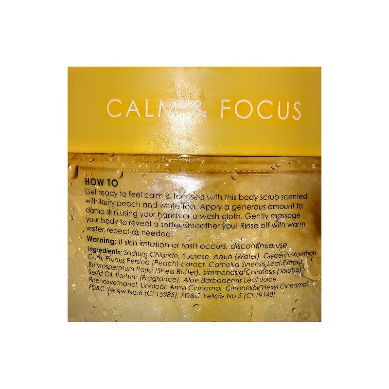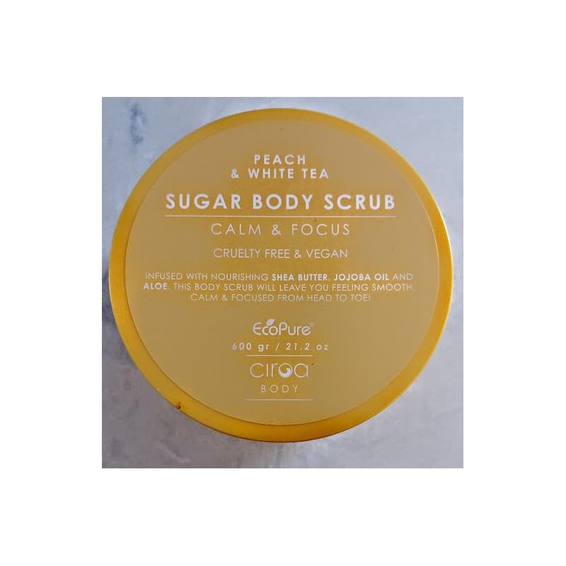- CIROA, PEACH & WHITE TEA, SUGAR BODY SCRUB, 21.2 OZ, CALM & FOCUS , CRUELTY & VEGAN FREE, Get ready to feel calm & focused with the body scrub scented with fruity peach & white tea. Reveal a softer smoother you.