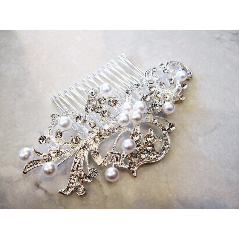 Generic Crystal and pearl silver hair comb barrette clip bridal clip silver bridal, 2