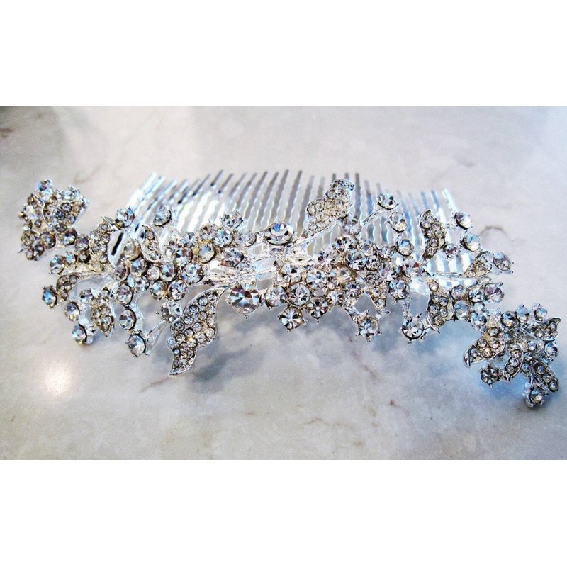 Generic Crystal leaves and flowers silver hair comb barrette clip bridal clip silver, 1