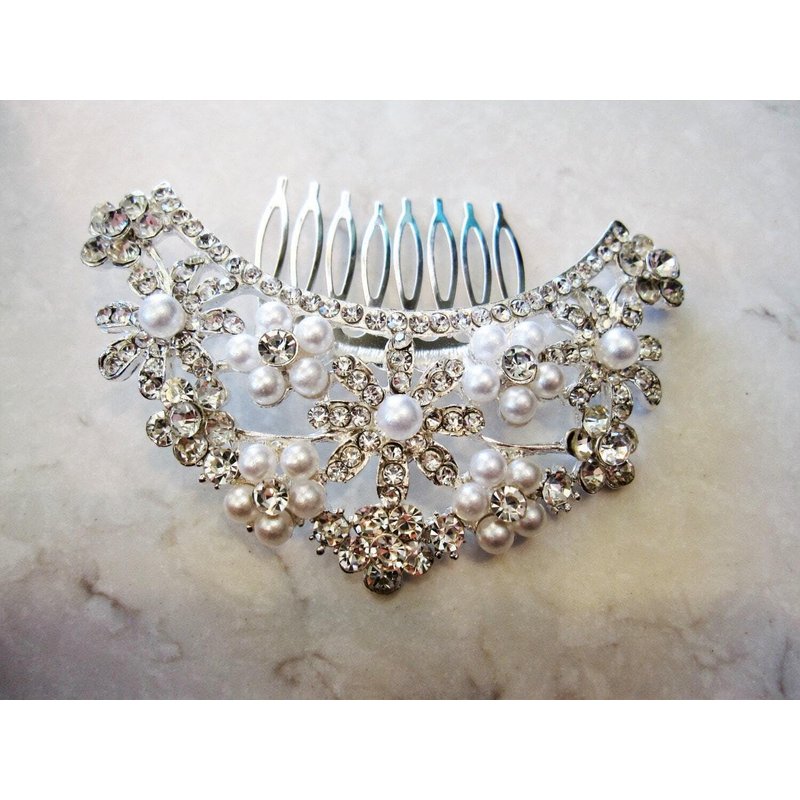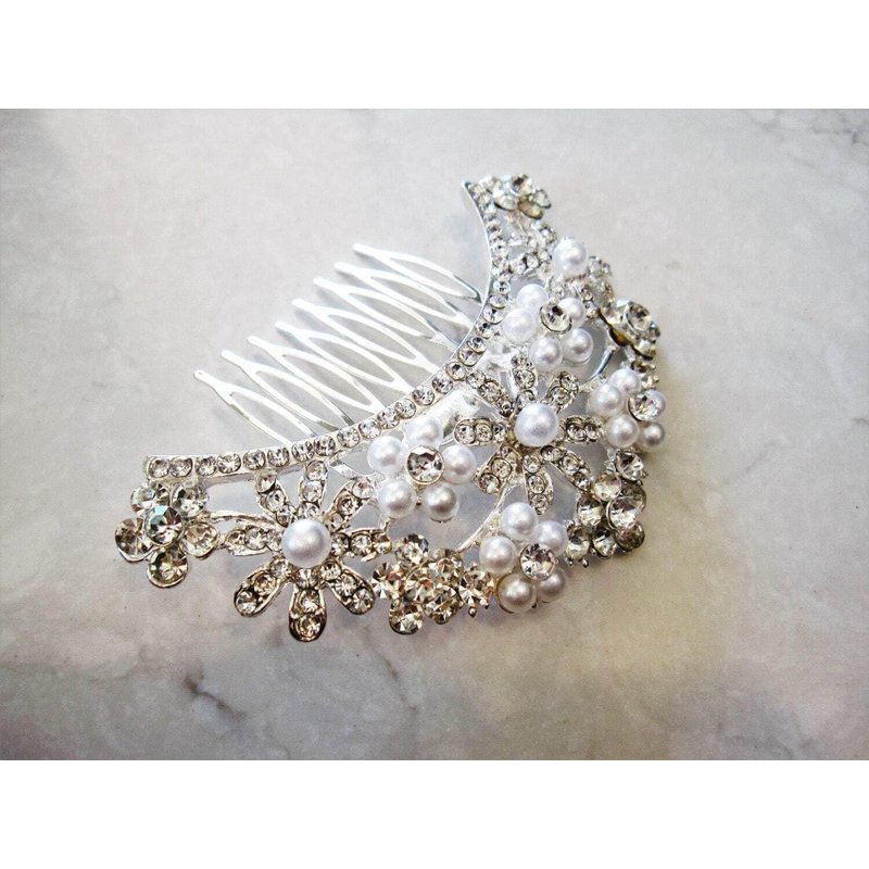 Generic Crystals, pearls and flowers silver hair comb barrette clip bridal clip, 1