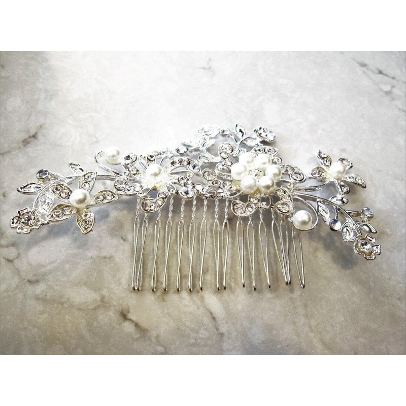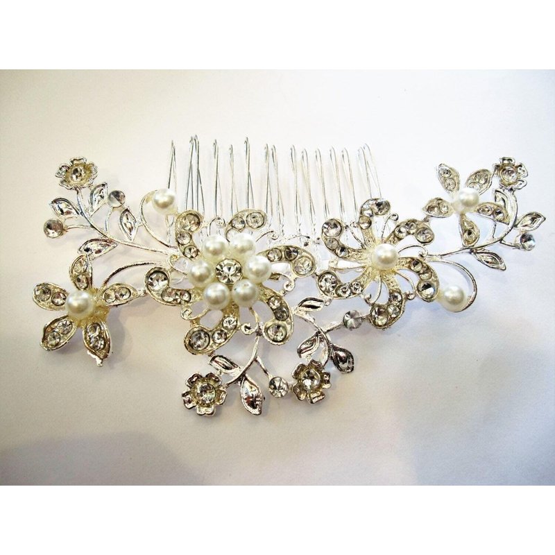 Generic Crystals, pearls and flowers silver hair comb barrette clip bridal clip A1
