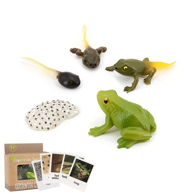 -The Animal Growth Cycle figurine comes with 5 real cards from Egg to Tadpole, Tadpole with Legs, Tadpole Without Gills and Mature Frogs to help children understand the growth process of frogs more clearly and realistically.