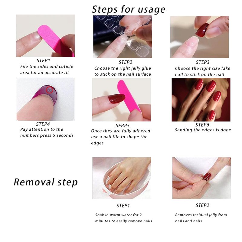 - 【Easy to Use】Instead of spend lots time and money at nail salon, you can change you nails style in 15 minutes anytime and anywhere. (The fake nails will stay longer if you clean your nails before use, and avoid water within the first hour of wearing)