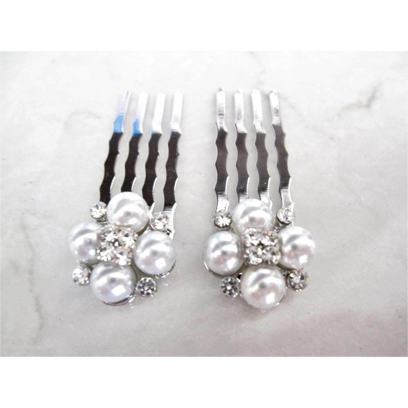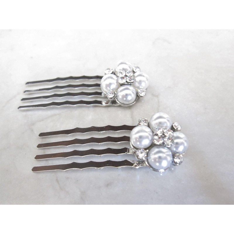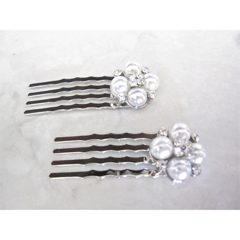 Generic Set of two small pearl and silver hair comb barrette clip bridal clip with, 7