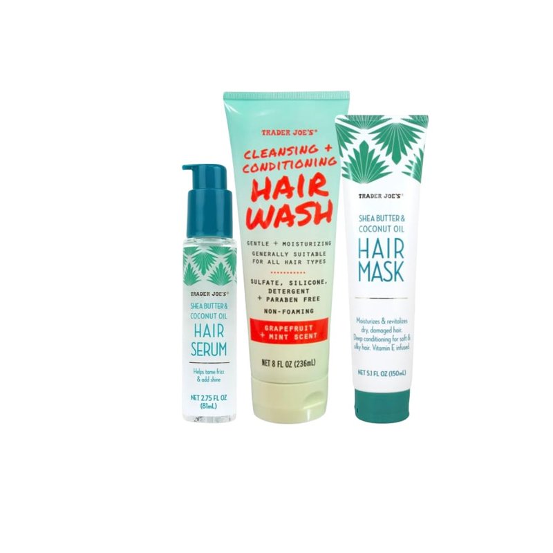 Generic Trader joes hair set - Shea Butter & Coconut Oil Hair Mask (5.1 Fl Oz), Shea Butter & Coconut Oil Hair Serum (2.75 Fl Oz and Cleansing & Conditioning Hair Wash (8 Fl Oz), White