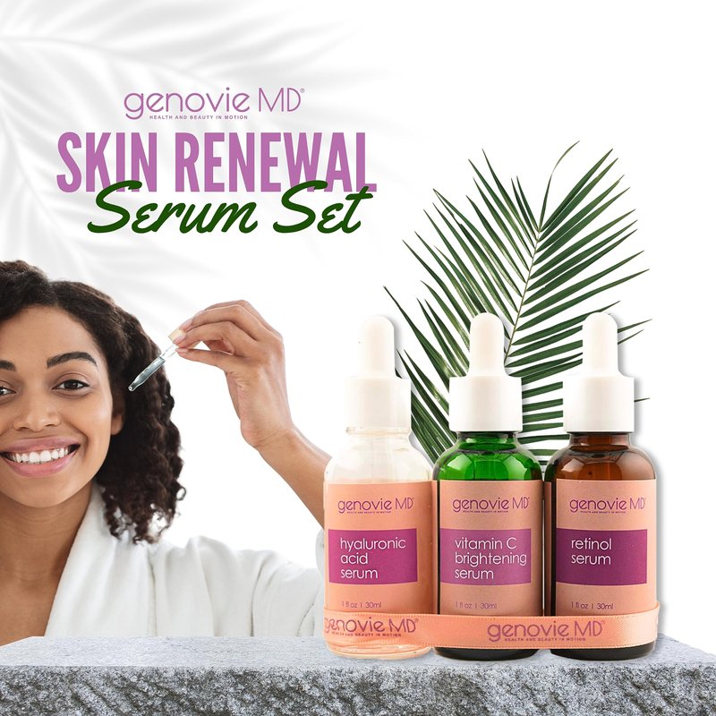 Genovie MD Skin Renewal Serum Set for Face with Vitamin C Serum, Hyaluronic Serum, and Retinol Serum, Face Serums for Firming, & Hydrating with Anti-aging Properties for Women