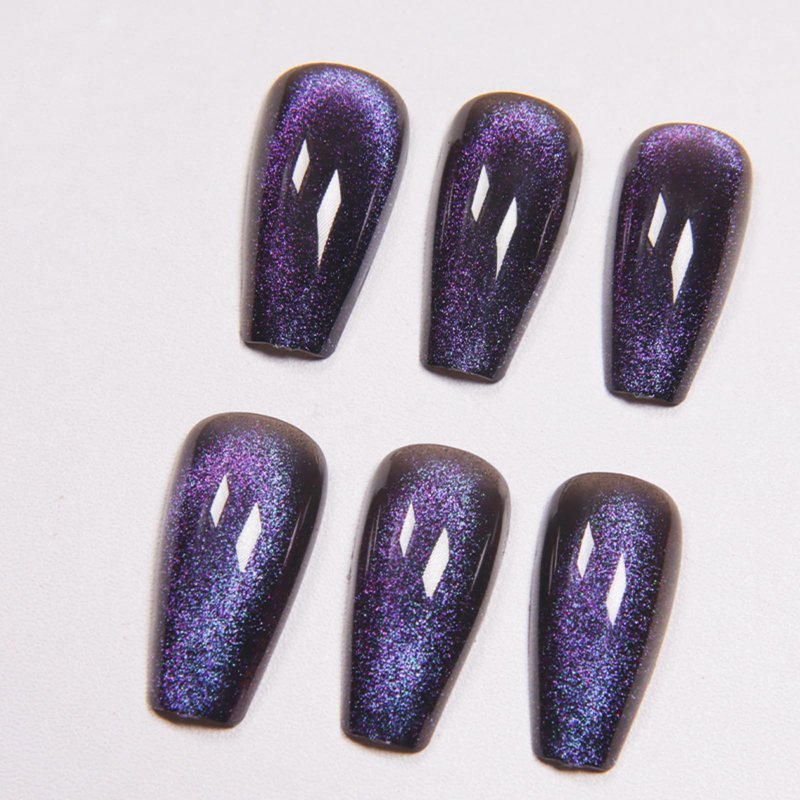 Gentle Claws Press On Nails - Midnight Purple | Dark Purple Glitter Velvet Nails, Medium Coffin Squared Press On Nails with Cat Eye Design for Women and Girls, 24 Pcs Reusable Purple Fake Nails