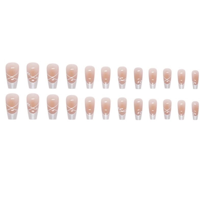 Gentle Claws Press On Nails | Shiny White Tip Pearl Nude Nails, Medium Coffin Squared French Tip Press On Nails for Women and Girls, 24 Pcs Reusable White Nude Fake Nails (Ballet)