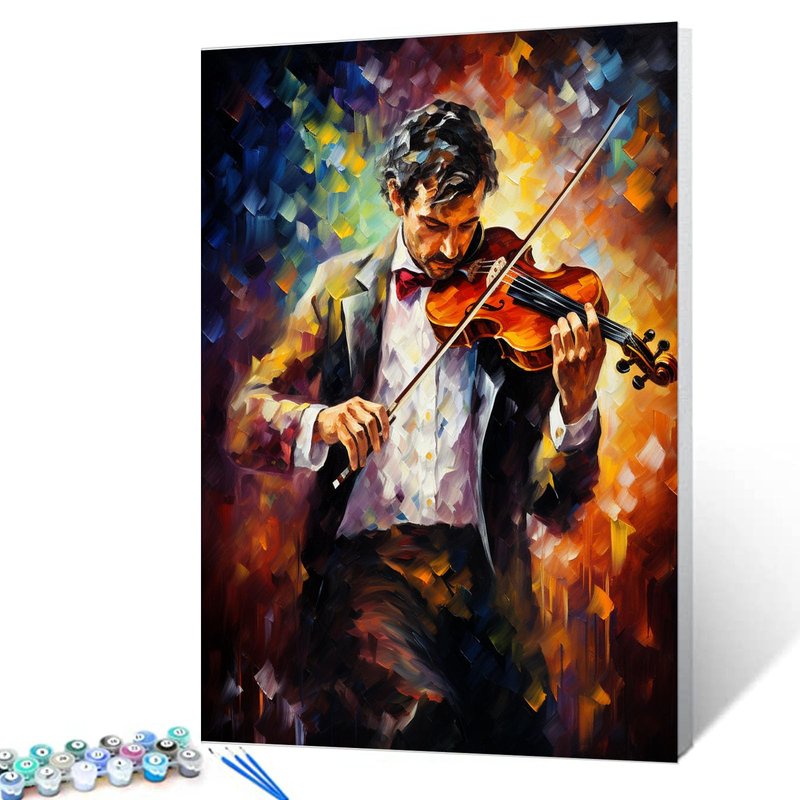 Gentleman Boy Playing Violin Oil Painting Musician Men Paint by Number Kits 16 x 20 inch Canvas Decor Landscape DIY Paintwork for Kids Adults Beginner with Brushes and Acrylic Pigment (without Frame)