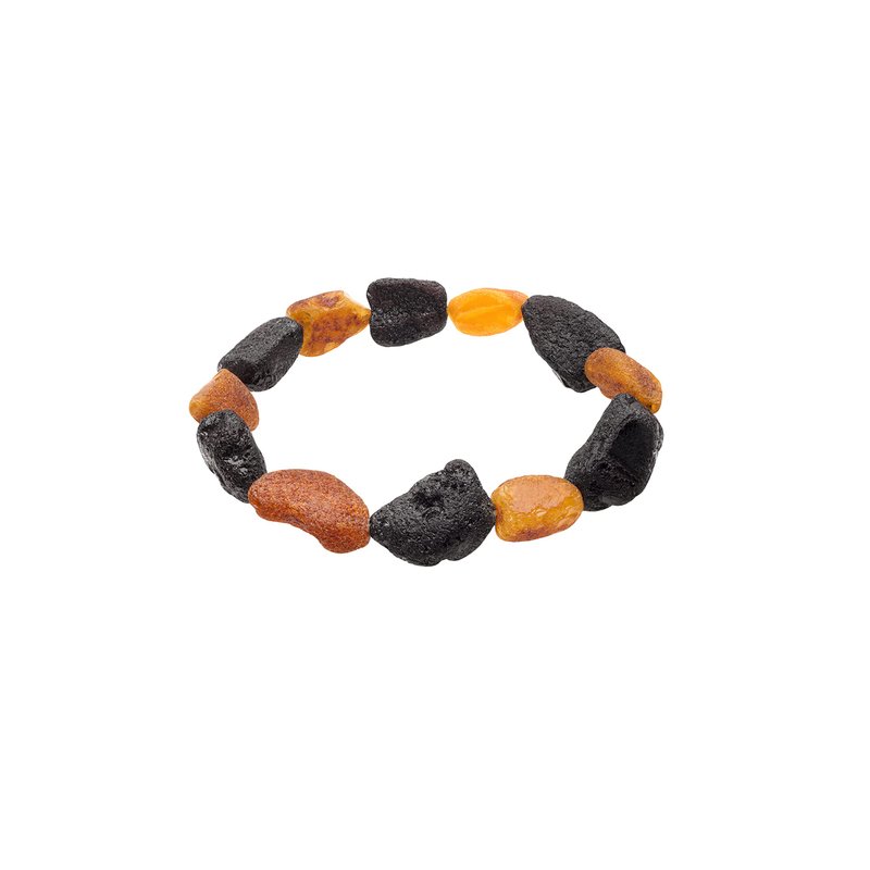 Genuine Amber Bracelet From Baltic Sea Made with Elastic Band Unpolished Cherry and Cognac 20 cm (7.9 Inches).