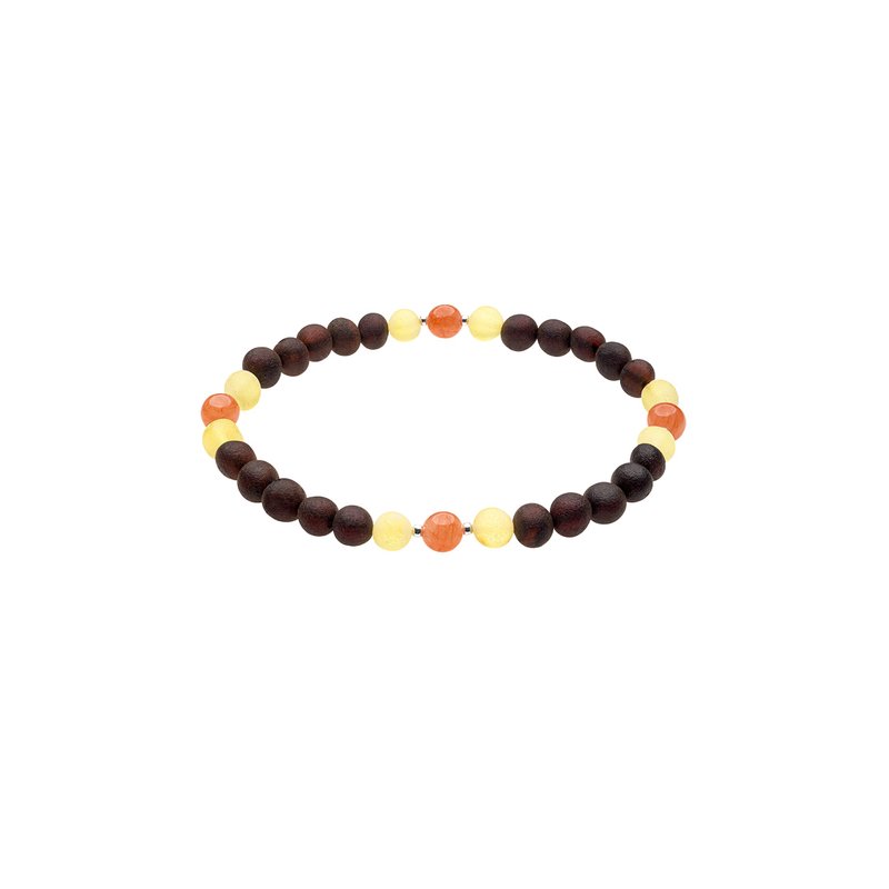 Genuine Amber Bracelet From Baltic Sea Made with Elastic Band Unpolished Cherry Lemon & Orange Jade 20 cm (7.9 Inches).