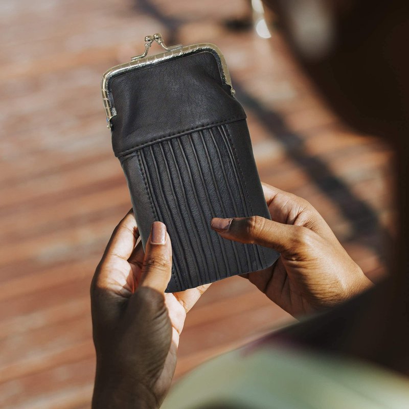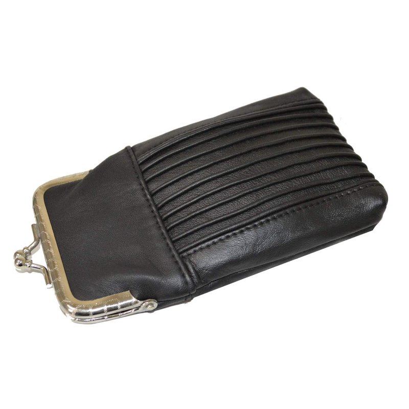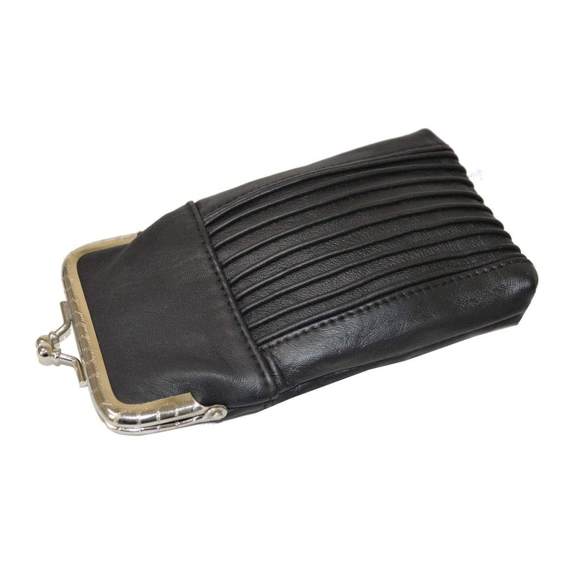 Genuine Leather Slim Cigarettes Case Holder Pack Regular or 100's & Lighter Pocket with Metal Twist Clasp, Black