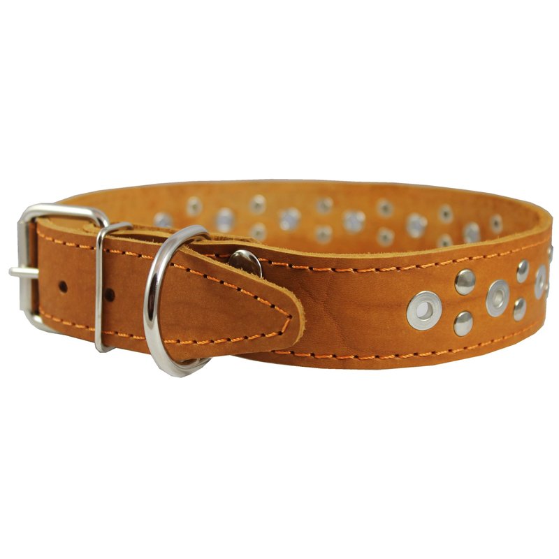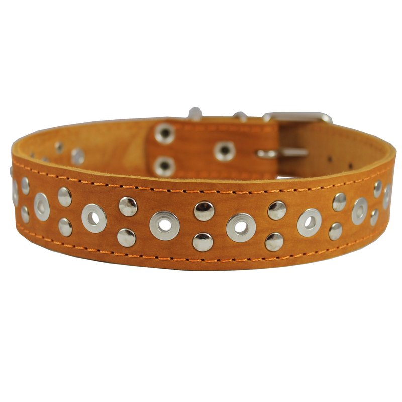 This durable studded dog collar is made of quality genuine leather. Trimmed with thick waxed thread. Perfect collar for daily use, made to last.