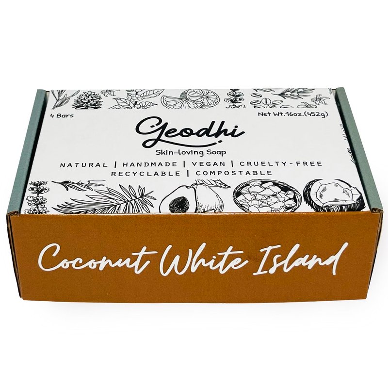 Geodhi, Handmade Vegan Cold Process Soap with Premium Essential Oils, Great for Acne, and Dry Skin - Set of 4 Both Women and Men Soap Bar-. (Coconut)