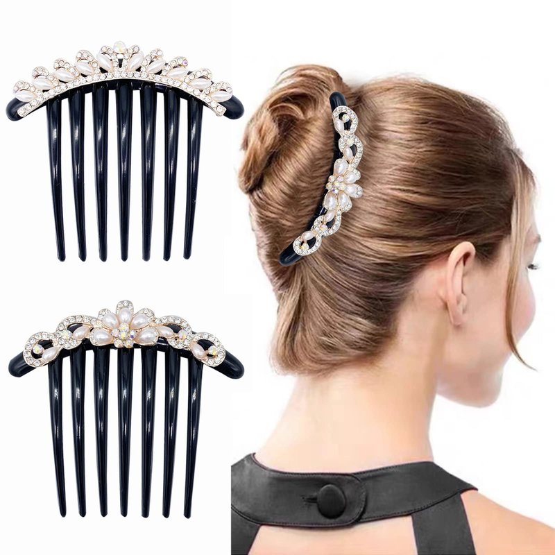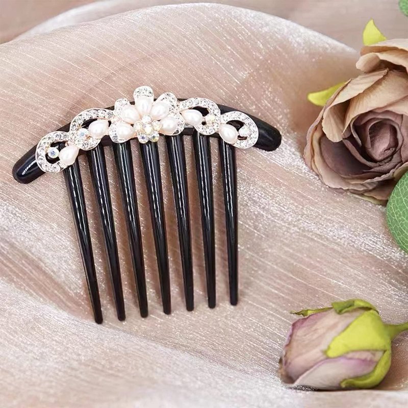- 【You Will Get】package includes 4 pieces rhinestone inlaid flower pearls hair comb