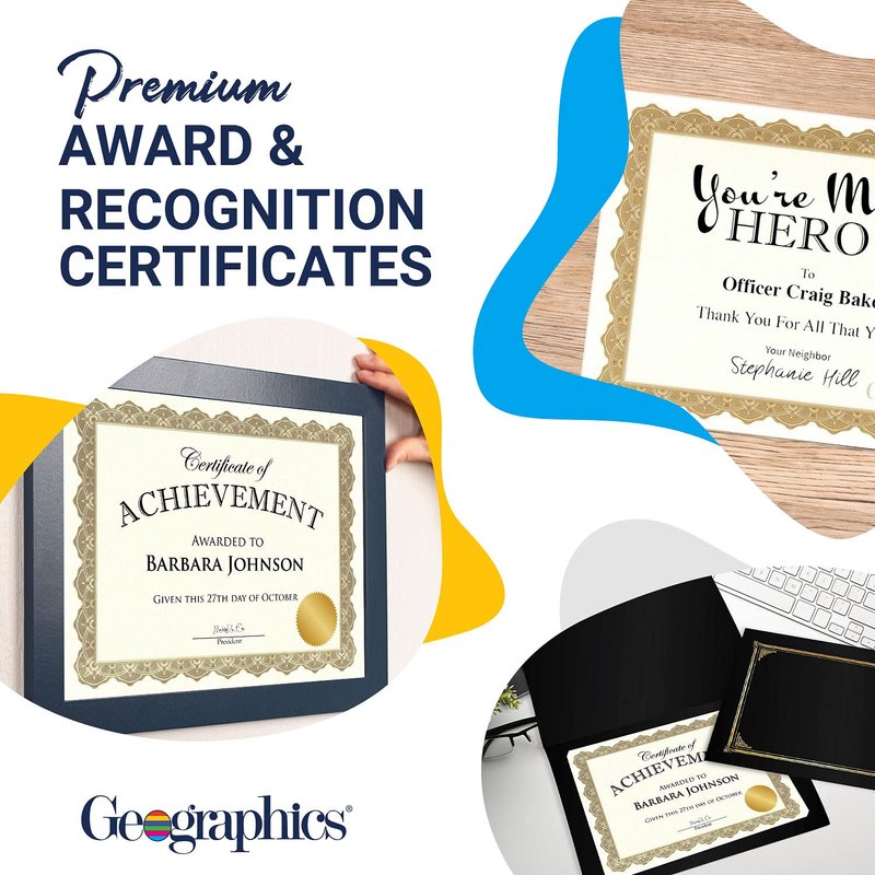 - certificates are perfect for certificates of recognition, merit awards, special achievements, announcements, promotions, graduation, and more