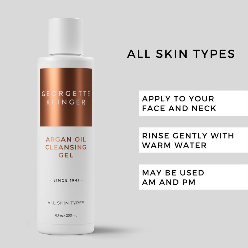 Georgette Klinger Argan Oil Cleansing Gel - Nourishing, Moisturizing, Antioxidant-Rich, With Deeply Healing Argan, Olive, And Bergamot Dissolve Existing Oils And Wash Away Dirt, Makeup - 6.7 oz