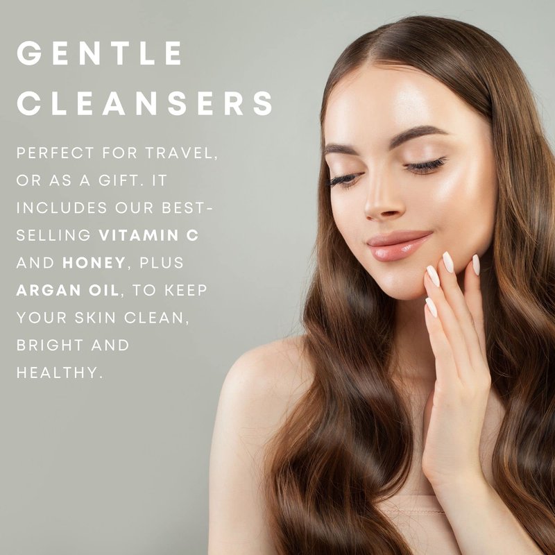 - SKINCARE GIFT SET: Travel size gel cleanser set includes Argan Oil Cleansing Gel, Vitamin C Cleansing Gel, and Honey Cleansing Gel for a healthy, fresh complexion
