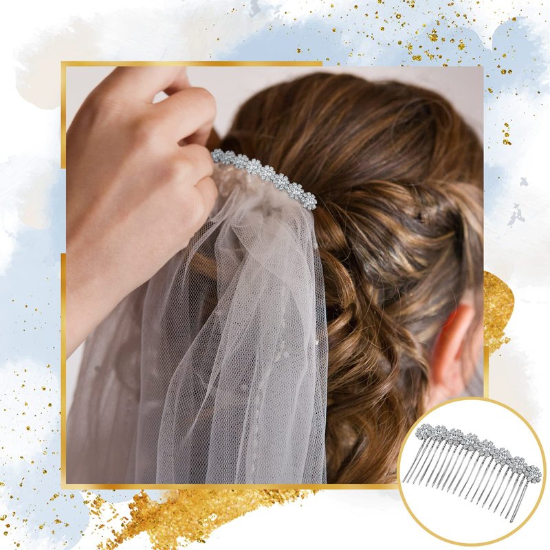- Silver and gold design: the flower rhinestone hair clips are silver and gold, which is very suitable for the bride's dress; The white veil with a hair clip and rhinestone dress will definitely make your wedding dress look better, make you become the eye catching one in the wedding