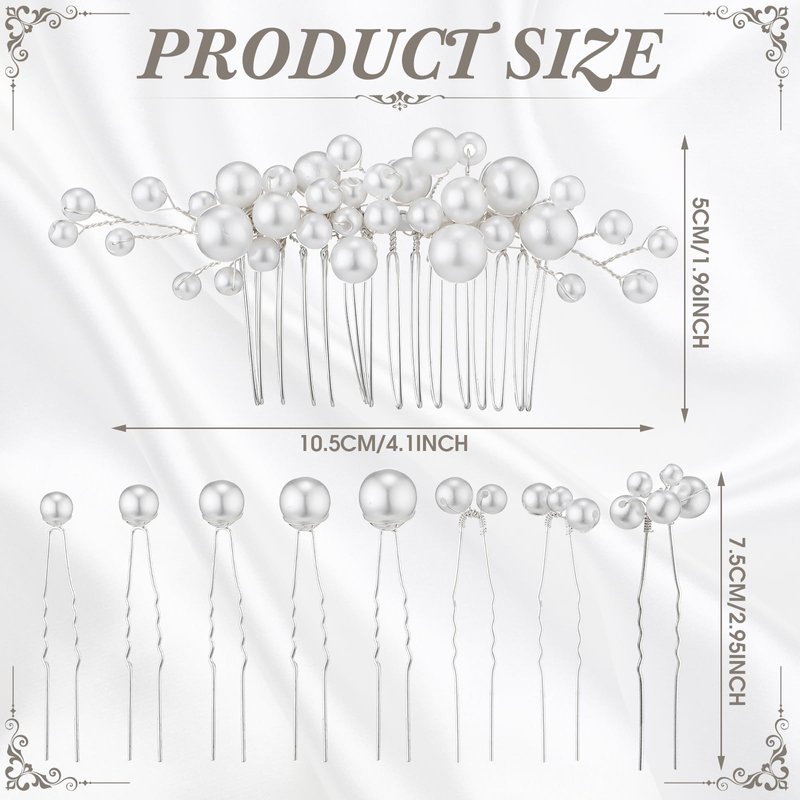- Nice Combination Set: we will provide you with 1 piece pearl hair comb, 8 pieces pearl hair clips, 9 pieces are in total, various and elegant styles in combinations and matching, nice for wedding, brides, bridesmaids or for stage, make you more charming; Warm reminder: the size and tightness of the comb and hairpin are adjustable