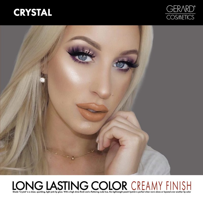 Crystal : Shade Crystal is a high shine, plumping lip gloss with a hint of nude sparkle. Wear this nude lip gloss alone for a sheer wash of color or layer it over your favorite Gerard Cosmetics Lipstick.